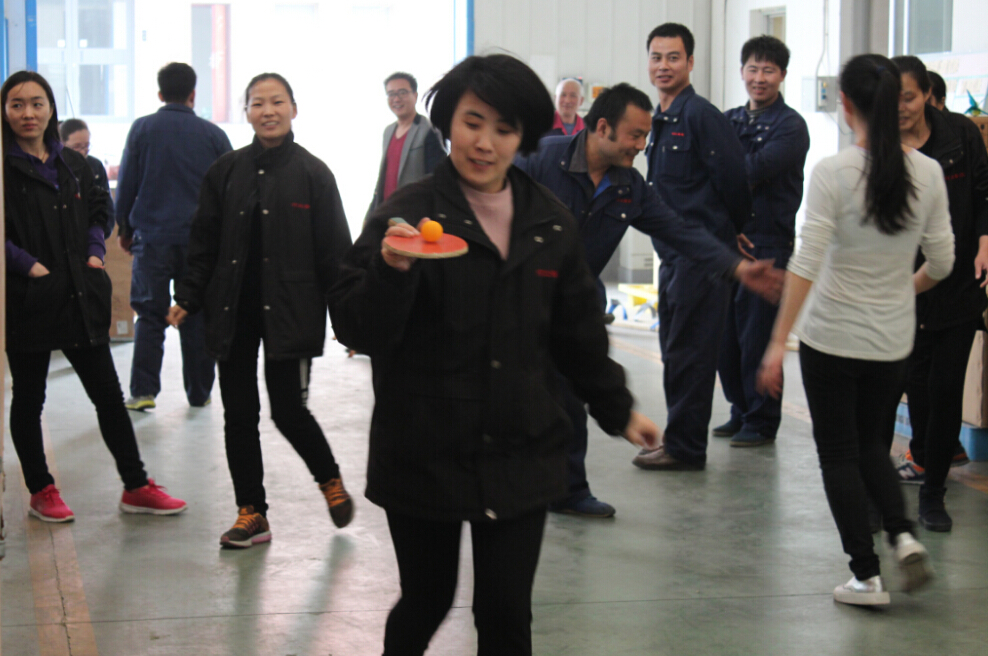 或在早晨的微涼春風(fēng)之中,或在中午烈日驕陽(yáng)之下,或在夕陽(yáng)霞光的照耀下,在普康公司寬闊的跑道上,隨處可見(jiàn)奔跑、跳躍的身影;車間通道上,有人在一遍一遍的運(yùn)球跑動(dòng);在廠房旁,毽子像蝴蝶一樣在上下飛舞;在辦公樓旁,有人在齊心協(xié)力的喊著一二;在主席臺(tái)前,是富有節(jié)奏的長(zhǎng)繩落地之聲。