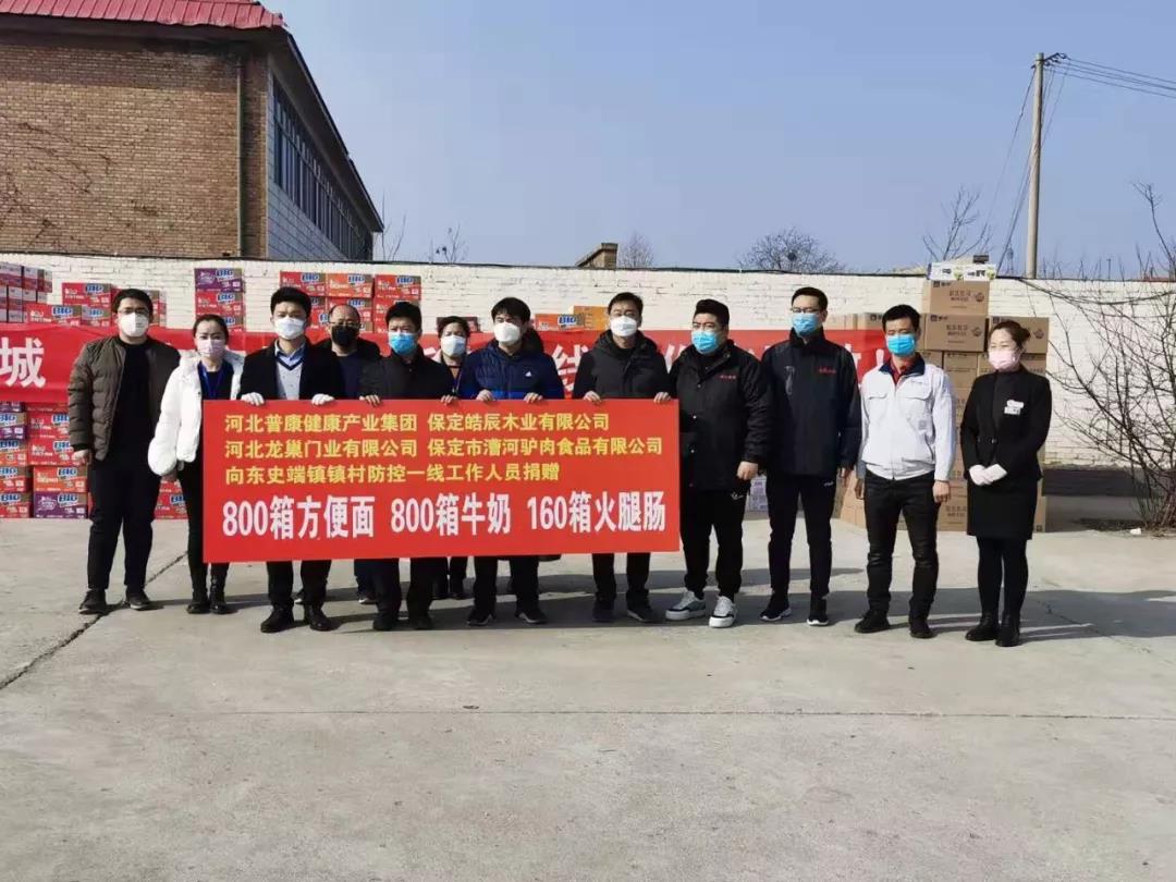 困難時刻顯擔(dān)當(dāng),關(guān)鍵時刻敢沖鋒,哪里有需要,哪里就能看見黨旗在飄揚。在這舉國戰(zhàn)“疫”的緊要關(guān)頭,普康健康產(chǎn)業(yè)集團(tuán)、皓辰木業(yè)有限公司、龍巢門業(yè)、漕河驢肉食品有限公司四家愛心企業(yè),積極響應(yīng),積極奉獻(xiàn)愛心、踐行社會責(zé)任,踴躍捐款捐物,于2月10日向東史端鎮(zhèn)防控一線工作人員捐贈800箱方便面,800箱牛奶,160箱火腿腸。這些物資將緊急發(fā)送至東史端鎮(zhèn)的15個村的防控監(jiān)測站。